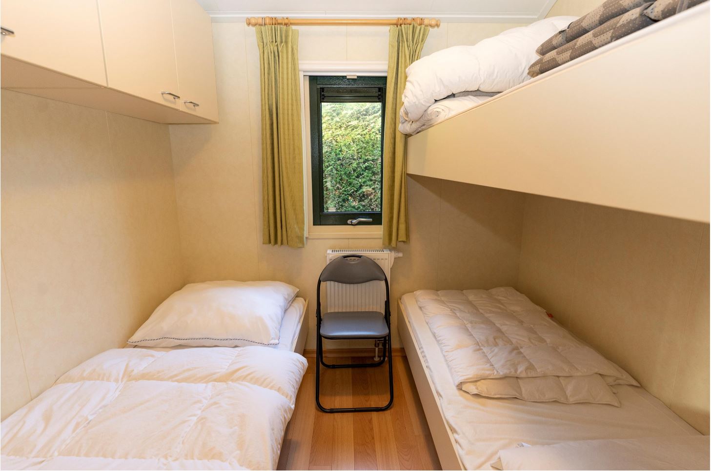Hal, entree en moderne keuken voorzien van benodigde apparatuur, heerlijke lichte woonkamer met schuifpui naar terras/vlonder en heerlijk ruime tuin. Veel raampartijen die u volop licht bieden in het gehele chalet. Twee slaapkamers, waarvan één voorzien van stapelbed en eenpersoonsbed, een prima badkamer voorzien van toilet, wastafel en douchecabine. Voorzien van eigen internet/wifi.